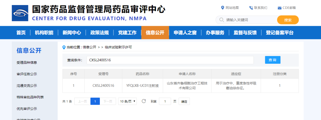 时隔半年,继3月份新利18软件官网首个干细胞药物IND获批,我公司研发部马贺然博士团队研发的人脐带间充质干细胞注射液(代号YFQLXB-UC01)再次收到国家药品监督管理局评审中心核准签发的药物临床试验批准通知书(受理号:CXSL2400516),适应症为中、重度急性呼吸窘迫综合征。