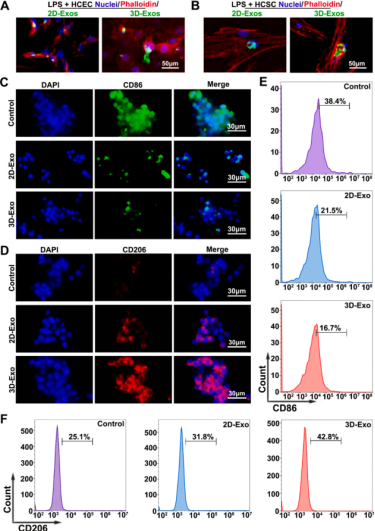 炎症反应是角膜损伤修复过程中的关键阻碍因素,而3D-Exos在模拟体内炎症环境的实验中,能够促进巨噬细胞从促炎的 M1 表型向抗炎的 M2 表型转化,从而减轻炎症反应。