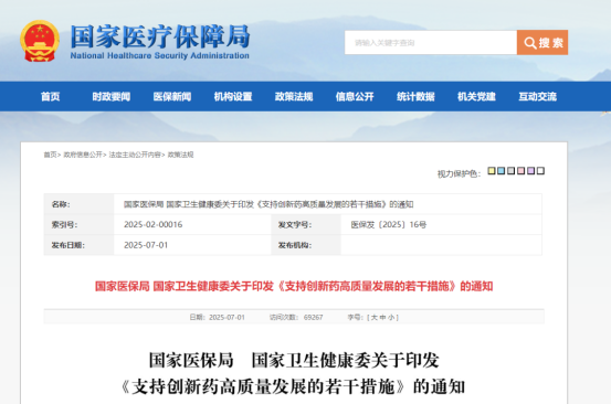 1.国家医保局联合国家卫生健康委出台《支持创新药高质量发展的若干措施》;