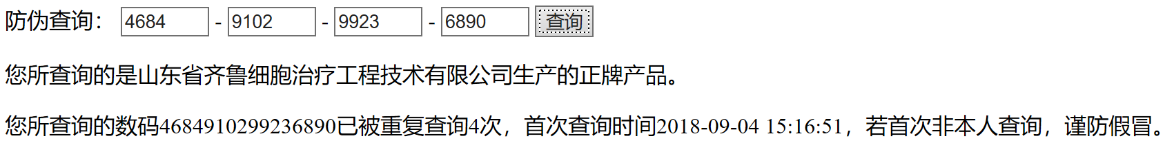 您所查询的数码***已被重复查询**次,首次查询时间****年**月**日 **时**分**秒,若首次非本人查询,谨防假冒。