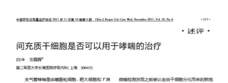 早在2011年,我国《中国呼吸与危重监护杂志》刊登了第二军医大学长海医院呼吸内科白冲、戈霞晖两位医生的文章,主要探讨了“间充质干细胞是否可以用于哮喘的治疗”这个主题。