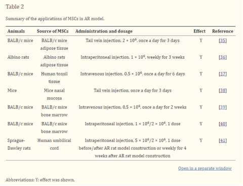 多项动物实验表明间充质干细胞在过敏性鼻炎动物模型中发挥了免疫调节作用。