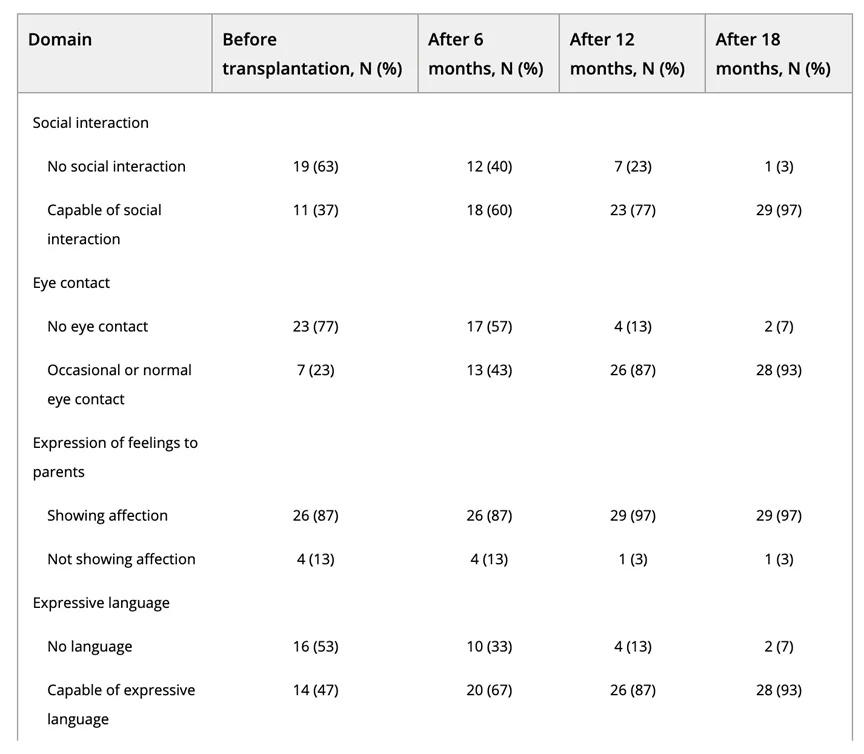 △自闭症患者社交,语言和日常技能移植后均得到改善